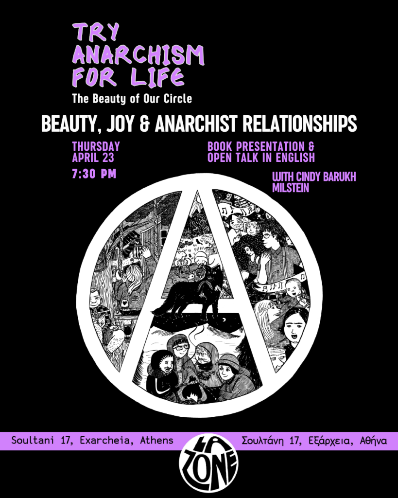 🔥 On the occasion of the “European” edition of the wonderful book “Try Anarchism For Life: The Beauty of Our Circle” (@activedistribution ) we are pleased to welcome Cindy Barukh Milstein (@cindymilstein ) to La Zone. The new zine “For anarchist relationships – Mutual aid for daily life, care and emotions” will also be available.