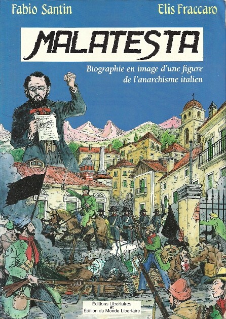 Il s’agit de l’édition en français d’une bande dessinée publiée en Italie en 1980, aux éditions Antistato, et dont les dessins ont été maintes et maintes fois reproduits dans les diverses publications libertaires, sans qu’on en connaisse toujours l’origine. Errico Malatesta (1853-1932) fut un lutteur et un polémiste de grande envergure, un monument du mouvement ouvrier transalpin. À 19 ans, il adhère à la Première Internationale, et devient rapidement le secrétaire de sa section italienne. C’est là qu’il rencontre Bakounine et adopte ses conceptions collectivistes anti-étatiques. Dans une période où le mouvement socialiste se clarifie, où ses différentes branches (réformiste, révolutionnaire, étatique, anti-étatique, etc.) se singularisent, Malatesta fait partie de ceux qui réfléchissent et donnent de la voix. Pendant plusieurs décennies on le verra participer à tous les grands débats qui agiteront le mouvement ouvrier et libertaire.